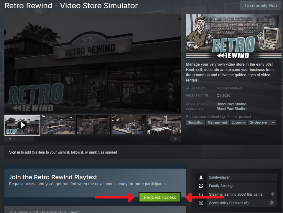 This playtest offers a taste of the full game experience, letting you step into the early 1990s and run your own video rental store for the first 7 in-game days.